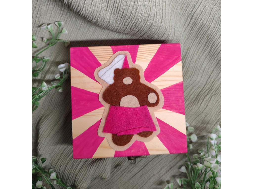 Materiál: nelakované dřevo, filc, akrylové barvy