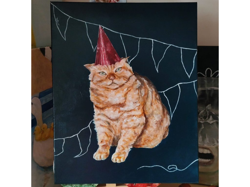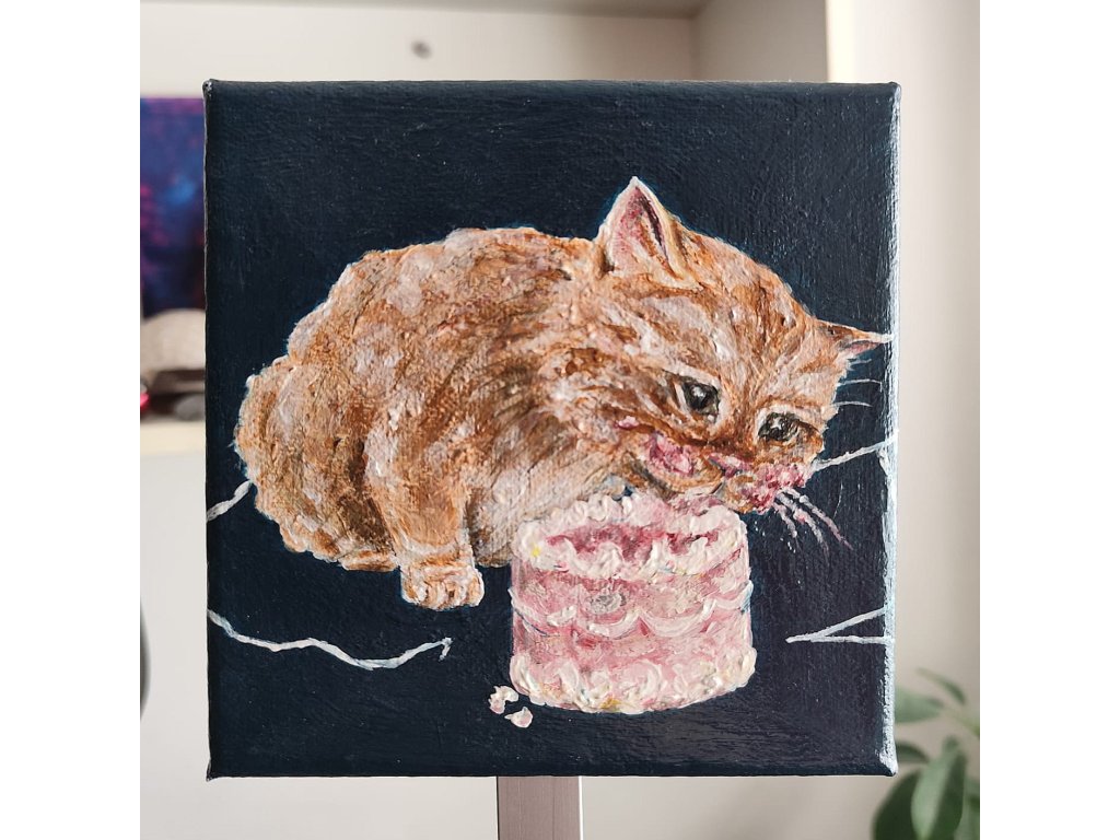 Malba akrylem na bavlněné plátno. Ošetřeno lesklým lakem.