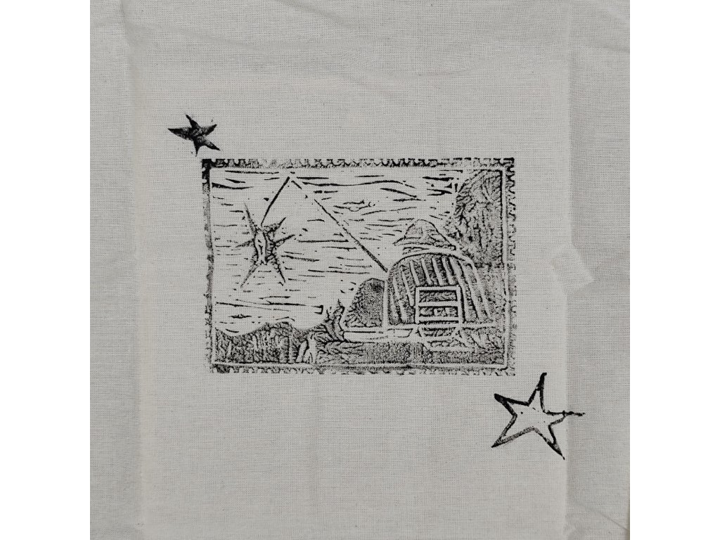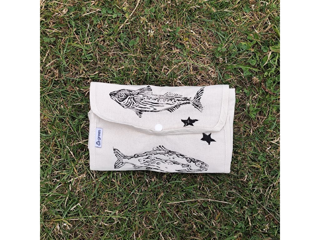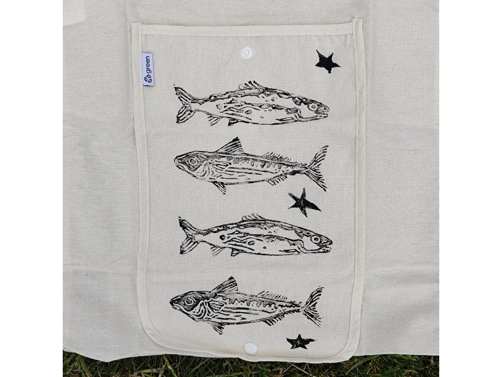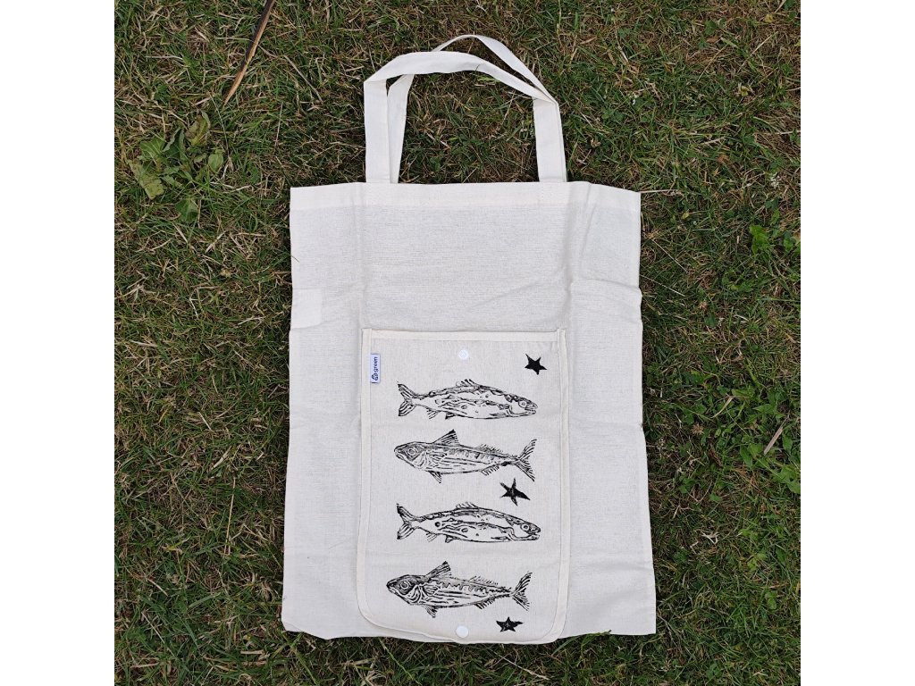 Skládací taška s motivem ryb (chyťte si tu svou co nejdříve, než vám uplave) - tisk linorytem
